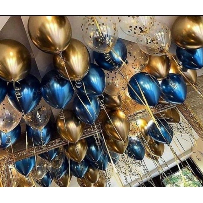 Состав композиции:Шар “Баблс дабл стафф” 70 см + глиттер – 1 штШар “Хром” 35 см – 5 штШар латексный 35 см – 5 шт..