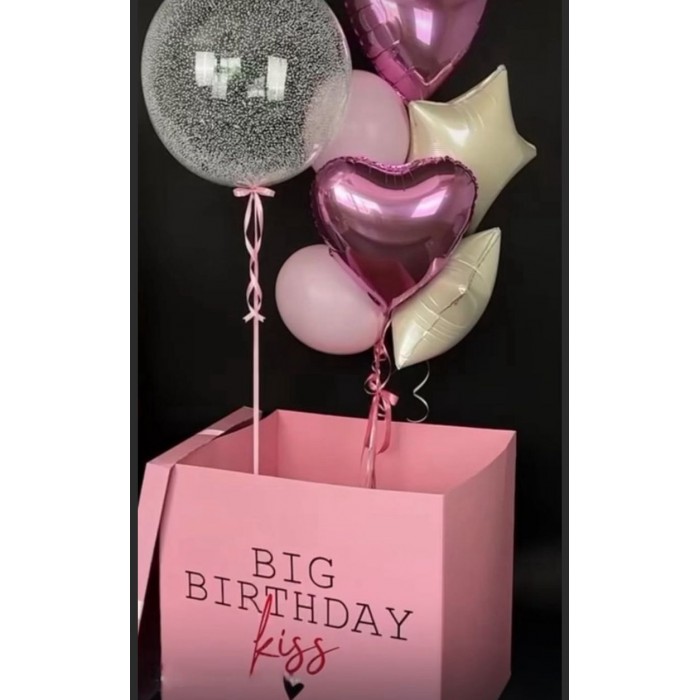 Коробка с вашей надписью-1штШар на ленте стеклянный-1 штШар фольгированный сердце 1штШар фольгированный звезда-1штШар латексный 35см-3шт... Читать далее...