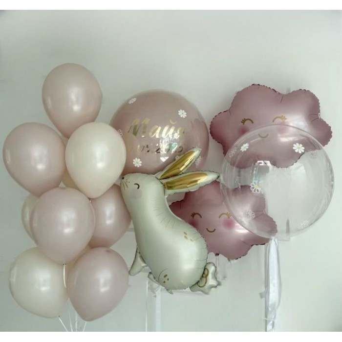 1 Бабл с ромашками- 1 Бабл даблстафф с надписью и ромашками- 2 фигуры "Облачко"- 1 фигура "Кролик"- 10 латексных шаров 30 см... Читать далее...