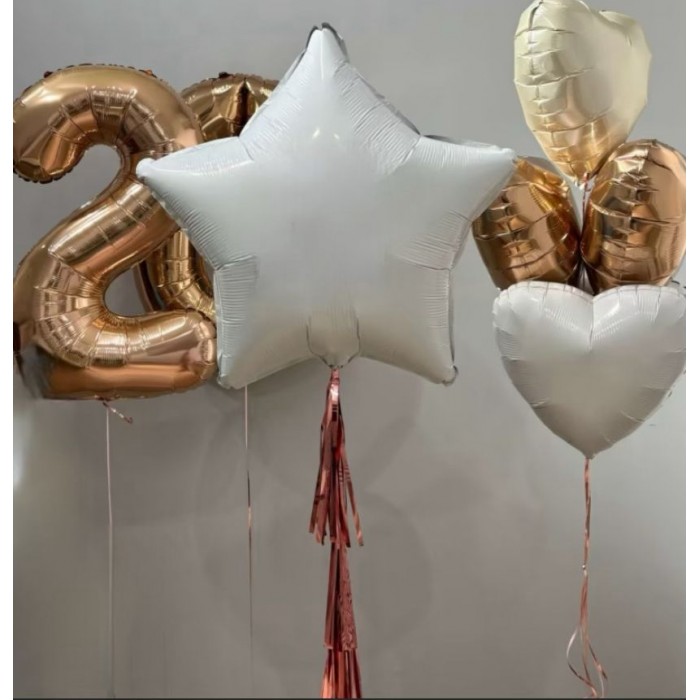 Состав композиции:Фольгированная звезда 76 см + надпись + тассел – 1 штФольгированная цифра 101 см – 2 штФольгированное сердце 45 см – 5 шт... Читать далее...