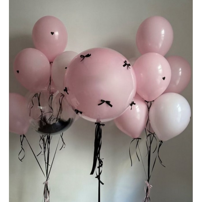 Шар “Баблс дабл стафф” 70 см + надпись + бантики- 1 шт
